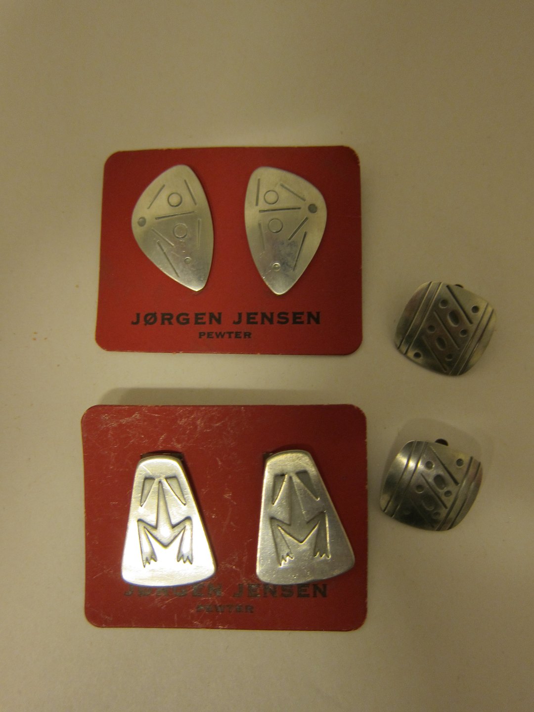 Ear Clips, pewter jewellery, Design: Jørgen Jensen Vintage Ear Clips Stamped: Jørgen Jensen Denmark Pewter Handmade We have a large choice of pewter jewellery Please contact us for further information Articleno.: 5154