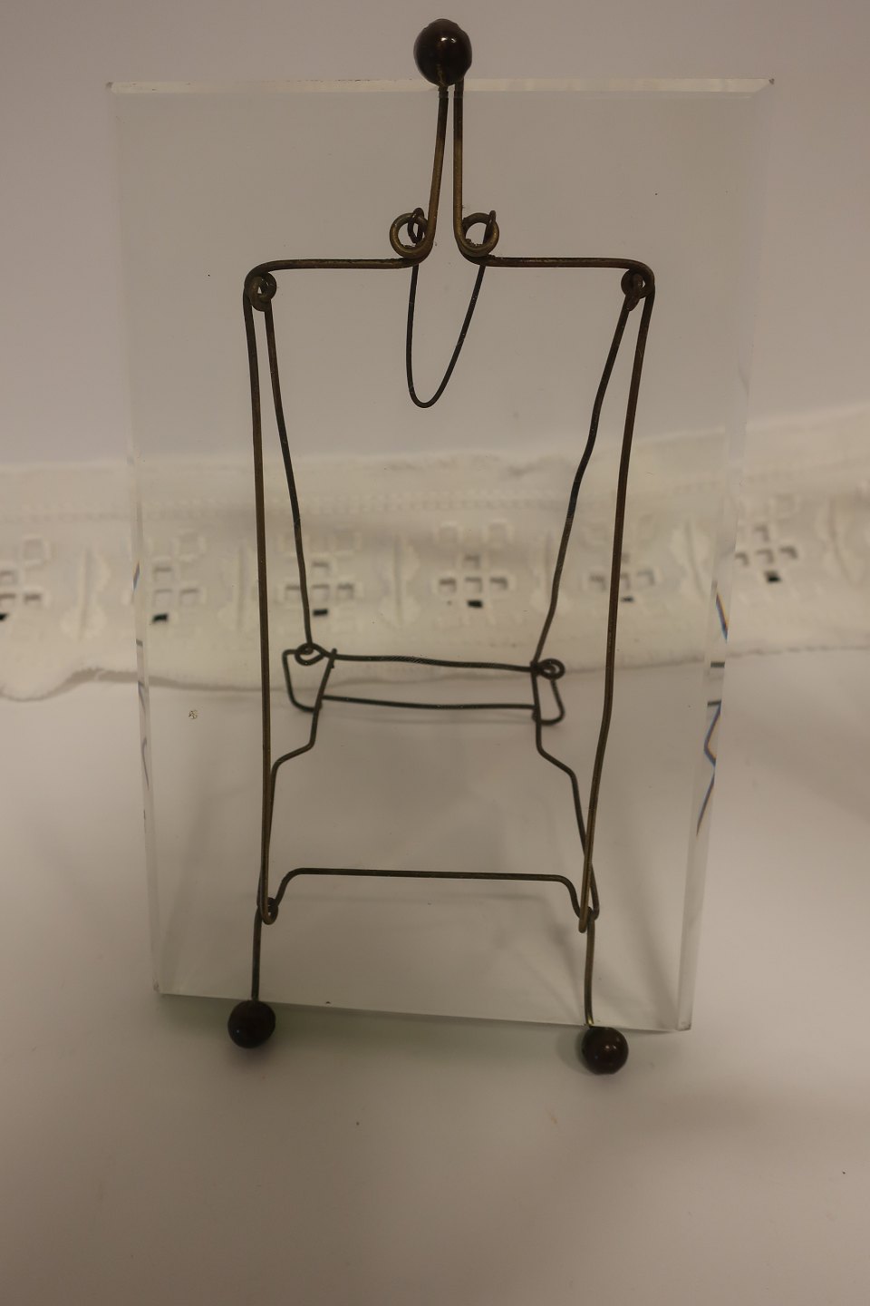 This frame is made of thick glass with a stand made of brass which can be folded up
