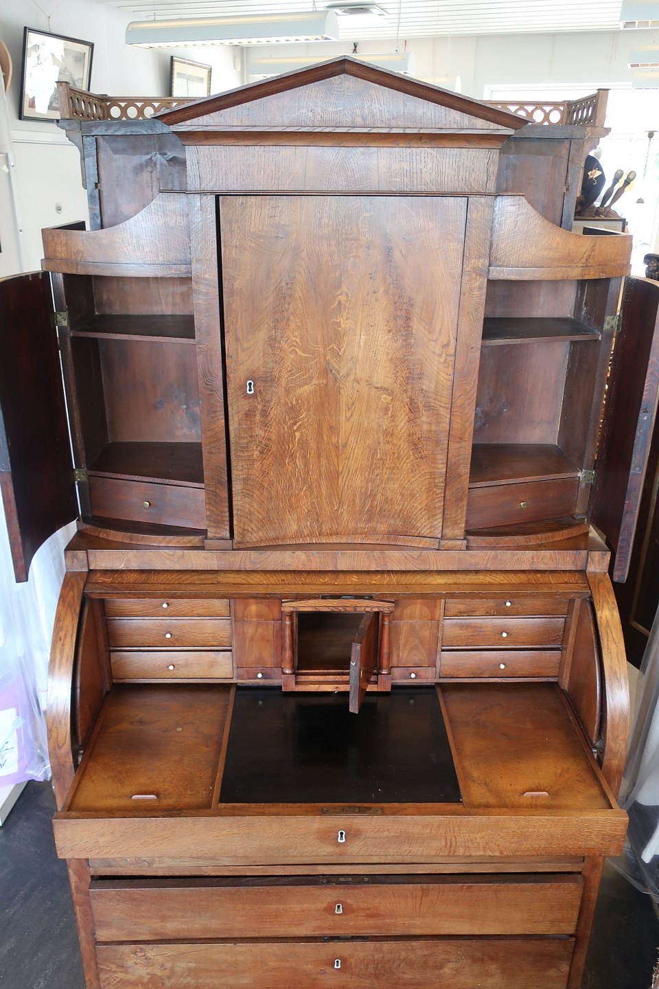 This antique writing bureau from Sønderjylland (Southern Jutland) is with a cylinderformed leaf