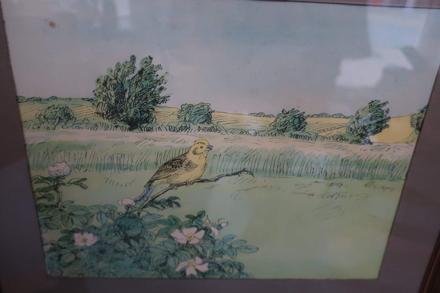 Lithograph, coloured Yellowhammer By Johannes Larsen (1867-1961) Signed About 1930 In the old frame In a good condition Articleno.: 2-41472