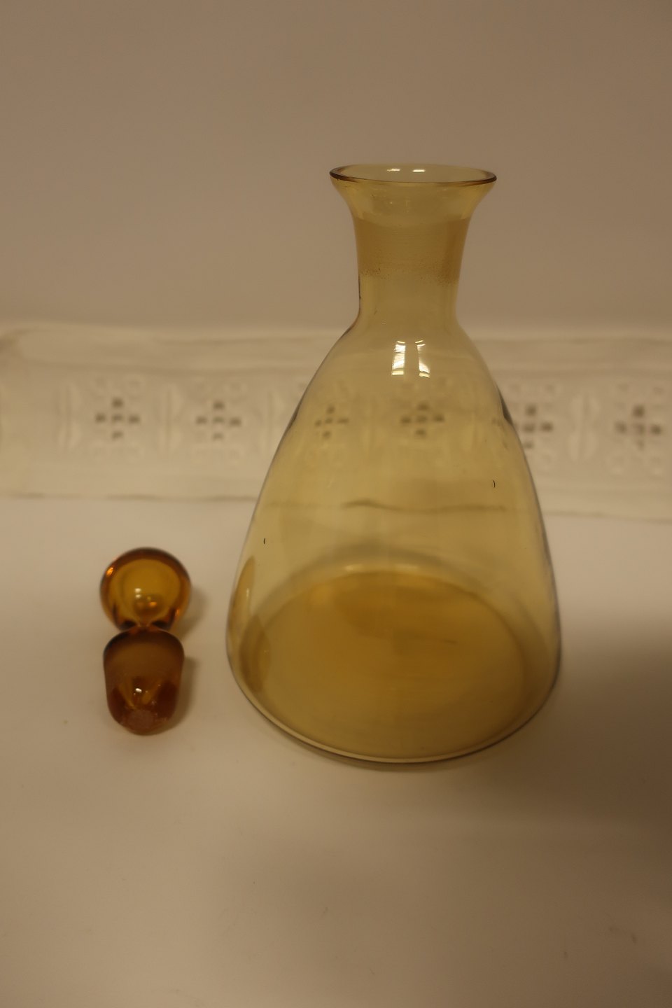 Decanter/carafe, glass with stopper H: about 21cm incl. stopper We have a large choice of antique glass, decanters as well as jugs Please contact us for further information Articlenr.: KL1006GL5