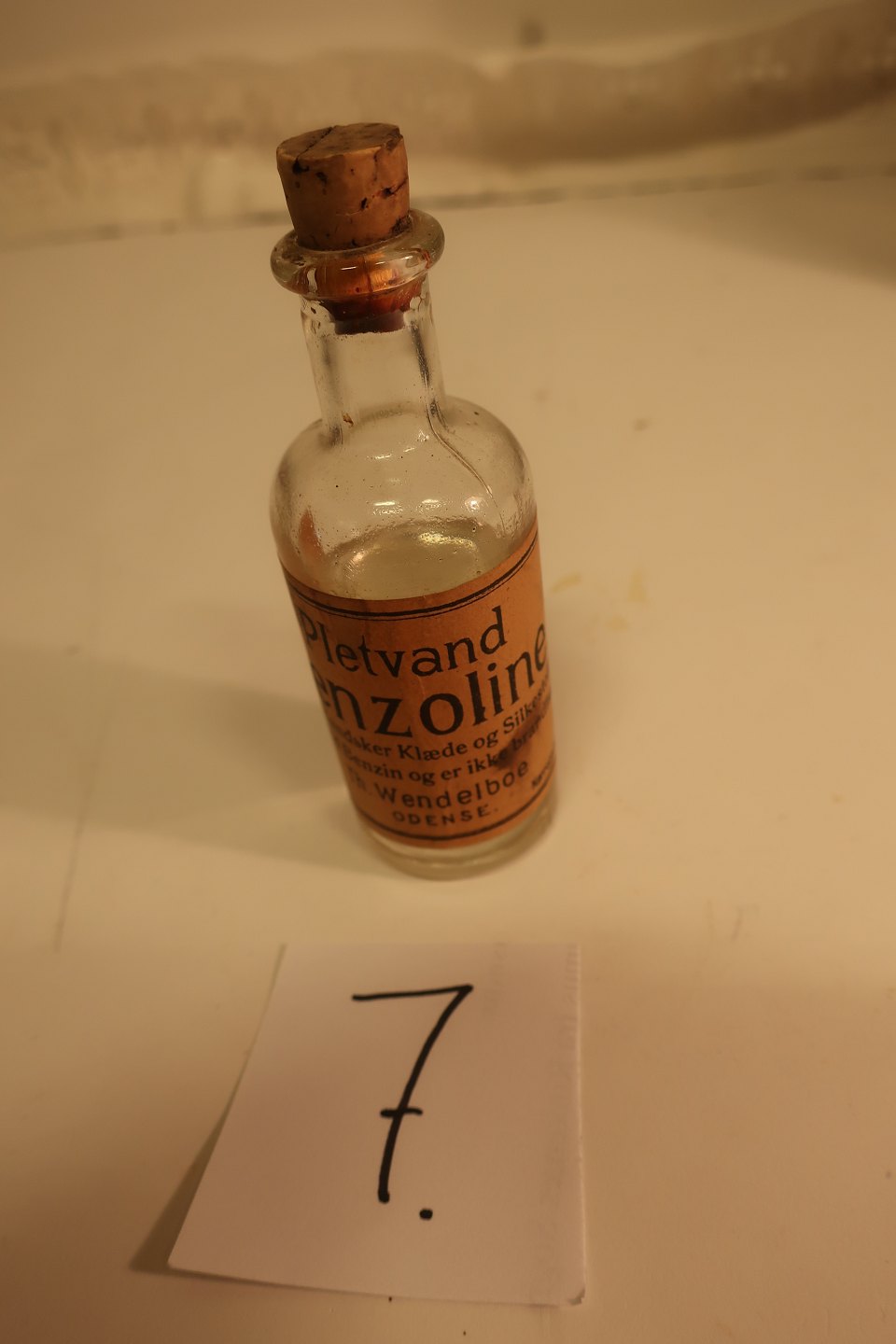 Pletvand / Benzoline i gammel flaske med den originale etikette og med originalt indhold (½ fyldt)